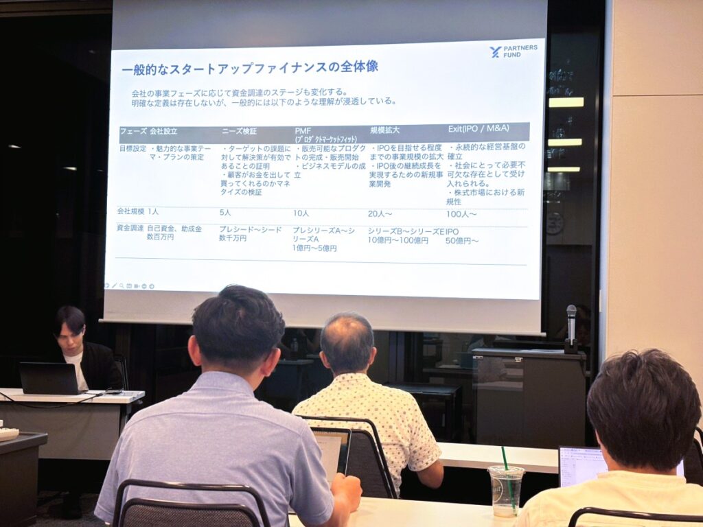 これまでにCVC(コーポレートベンチャーキャピタル)やVC(ベンチャーキャピタル)の立ち上げ、複数の投資実行を経験してきた種市氏。実務のエキスパートから、スタートアップが知っておくべき資金調達の基礎や、VCからの資金調達(エクイティファイナンス)に関する実践的な知見が説かれました。