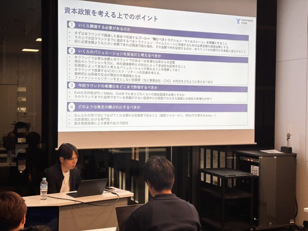 千代田CULTURE x TECH は9月29日(月)、「千代田CULTURE x TECHアクセラレータープログラム2025」DAY4を開催しました。この日のテーマは「資金調達」。講師にパートナーズファンドで代表パートナーを務める種市亮氏を迎え、『エクイティとExit(VCの選定方法、資本政策、契約の注意点等)』を実施しました。