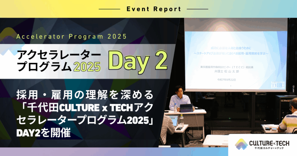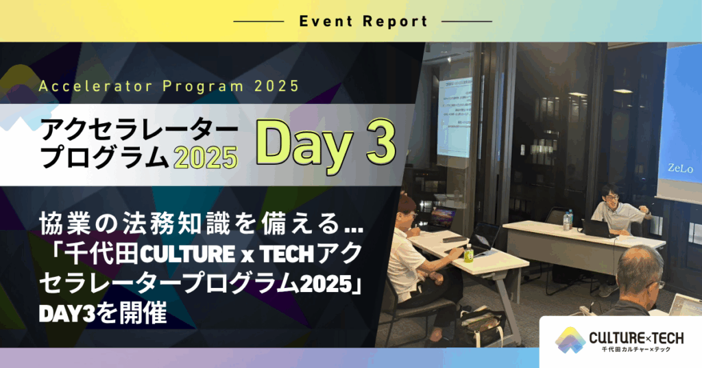 協業の法務知識を備える…「千代田CULTURE x TECHアクセラレータープログラム2025」DAY3のレポートを公開!