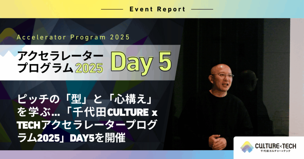 ピッチの「型」と「心構え」を学ぶ…「千代田CULTURE x TECHアクセラレータープログラム2025」DAY5のレポートを公開!